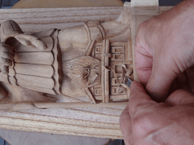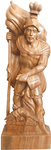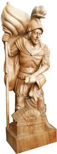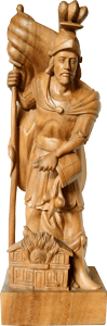 | Da ohne Kopierfräße hergestellt ist jede Florianfigur individuel ein Unikat.Die geringfügigen Unterschiede unterstreichen die handgefertigte Herstellung und momentane Eingebung an Vorstellung und Inspiration des Bildhauers. |